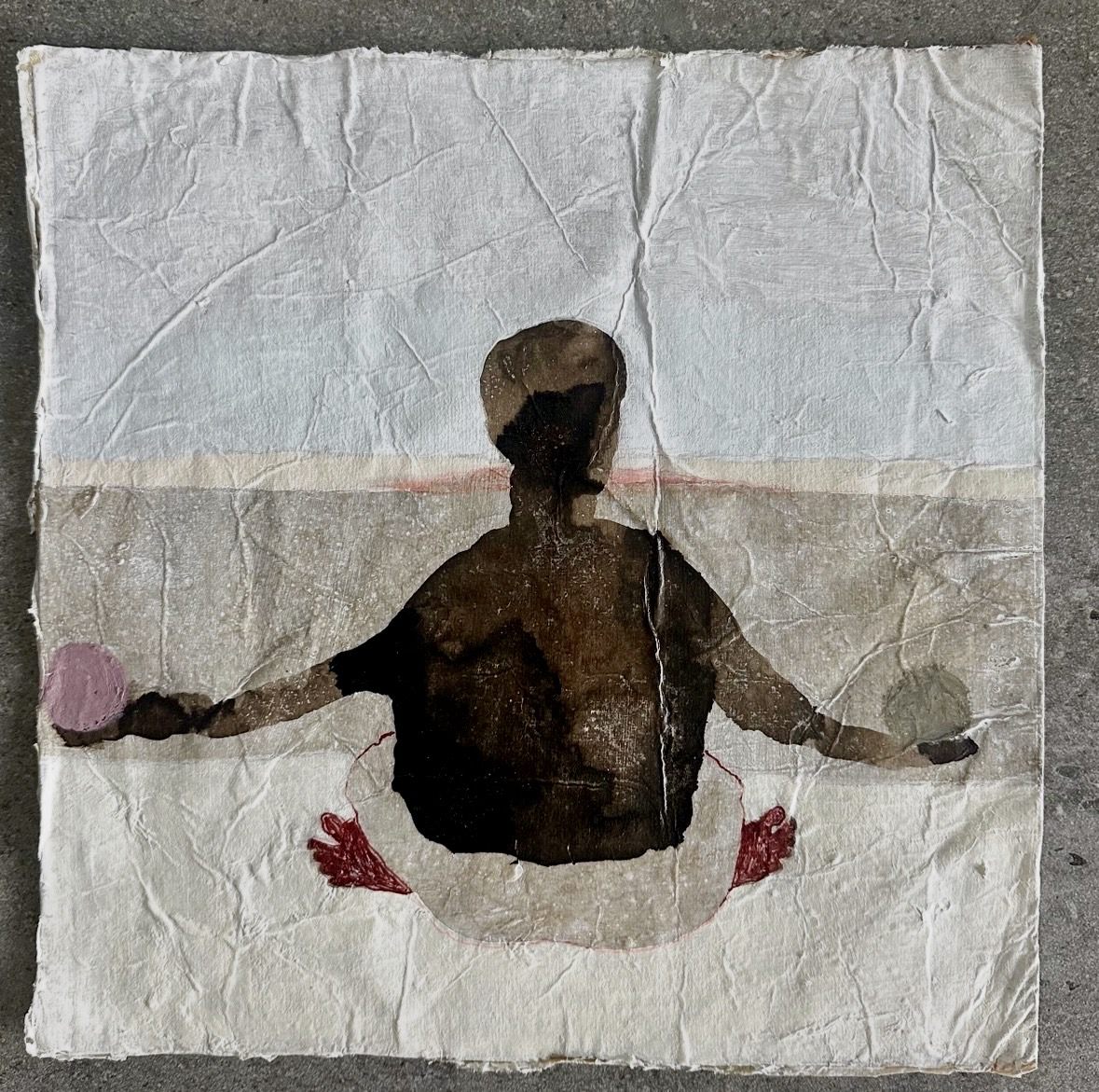 The balancing act, ink, acrylic snd oilpaint on Chinese paper, 35 x 35 cm